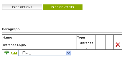 To add the Login panel to your paragraph, Select 'Login' option in the paragraph drop down list and click on the "Add" link.